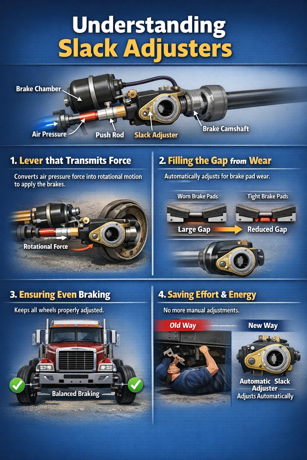 In der Vergangenheit mussten erfahrene Fahrer häufig unter das Fahrzeug kriechen und diese Einsteller manuell mit einem Schraubenschlüssel einstellen, um sicherzustellen, dass die Bremsen ordnungsgemäß funktionierten. Moderne automatische Gestängesteller sind viel ausgefeilter. Sie können erkennen, ob das Bremsspiel beim normalen Bremsen zu groß ist, und es automatisch entsprechend anpassen.